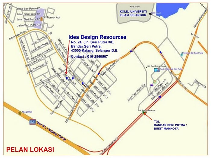 No. 24 Jalan Seri Putra 3/E, Bandar Seri Putra, 43000 Kajang, Selangor. H/P. No: 016-2960507